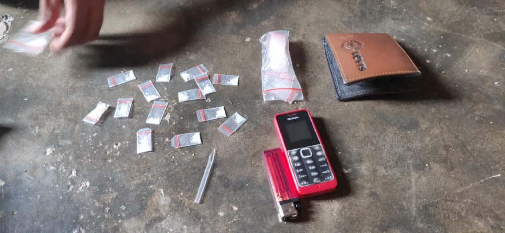 Usai mengamankan kedua pelaku, kata Kapolsek, petugas menyuruh kedua pelaku mengeluarkan isi kantong ke 2 orang tersebut dan dari kantong celana pelaku S alias Adi dikeluarkan dompet warna coklat berisikan sepotong kertas warna putih didalamnya terdapat 1 klip plastik besar berisikan 14 klip plastik kecil berisikan narkotika jenis Sabu, 1 klip besar berisikan 20 klip plastik kosong dan 2 pipet/skop.