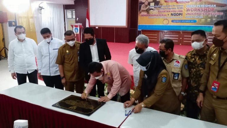 KEPRI, KLIKINFOKOTA.CO.ID – Kepala Dinas Pendidikan Provinsi Kepulauan Riau (Kepri), Muhammad Dali mendampingi Gubernur Kepri H. Ansar Ahmad meresmikan Workshop Welding Underwater SMK Negeri 1 Batam, pada Senin (22/11).