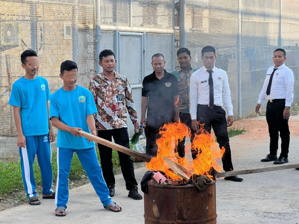 Proses pemusnahan dilakukan dengan cara yang aman dan terkendali, mengikuti prosedur standar operasional, demi menghindari risiko yang tidak diinginkan. Kegiatan ini tidak hanya merupakan tindak lanjut dari hasil penggeledahan, namun juga bagian dari strategi berkelanjutan dalam menjaga stabilitas keamanan di lingkungan Rutan Batam.